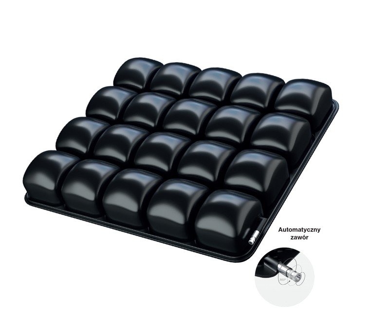 Specjalna wielokomorowa konstrukcja oraz możliwość zmiany twardości poprzez dopompowanie lub upuszczenie powietrza gwarantują wysoki komfort użytkowania. Zastosowanie automatycznego zaworu umożliwia w dowolnej chwili zmianę twardości poduszki w zależności od preferencji użytkownika. Wykonana jest z wysokiej jakości tworzywa odpornego na nacisk. Niezależne komory połączone są w jeden system powietrzny, dzięki czemu umożliwią balans ciała. Nacisk na wybrną komorę, powoduje wzrost ciśnienia w sąsiedniej komorze i tym samym odciążenie poszczególnych części ciała. Dzięki zastosowaniu odpowiedniej technologii zgrzewania poduszka nie rozszczelnia się.
