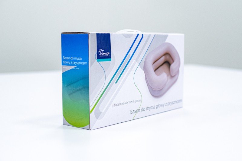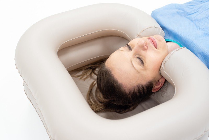 Nadmuchiwany basen przeznaczony jest do mycia włosów na przykład w łóżku. Wystarczy umieścić miskę pod głową. W celu ułatwienia obsługi, ma dwie komory powietrzne, z których każda posiada własną dziurkę do nadmuchiwania. Może być nadmuchiwany poprzez usta lub za pomocą pompki.